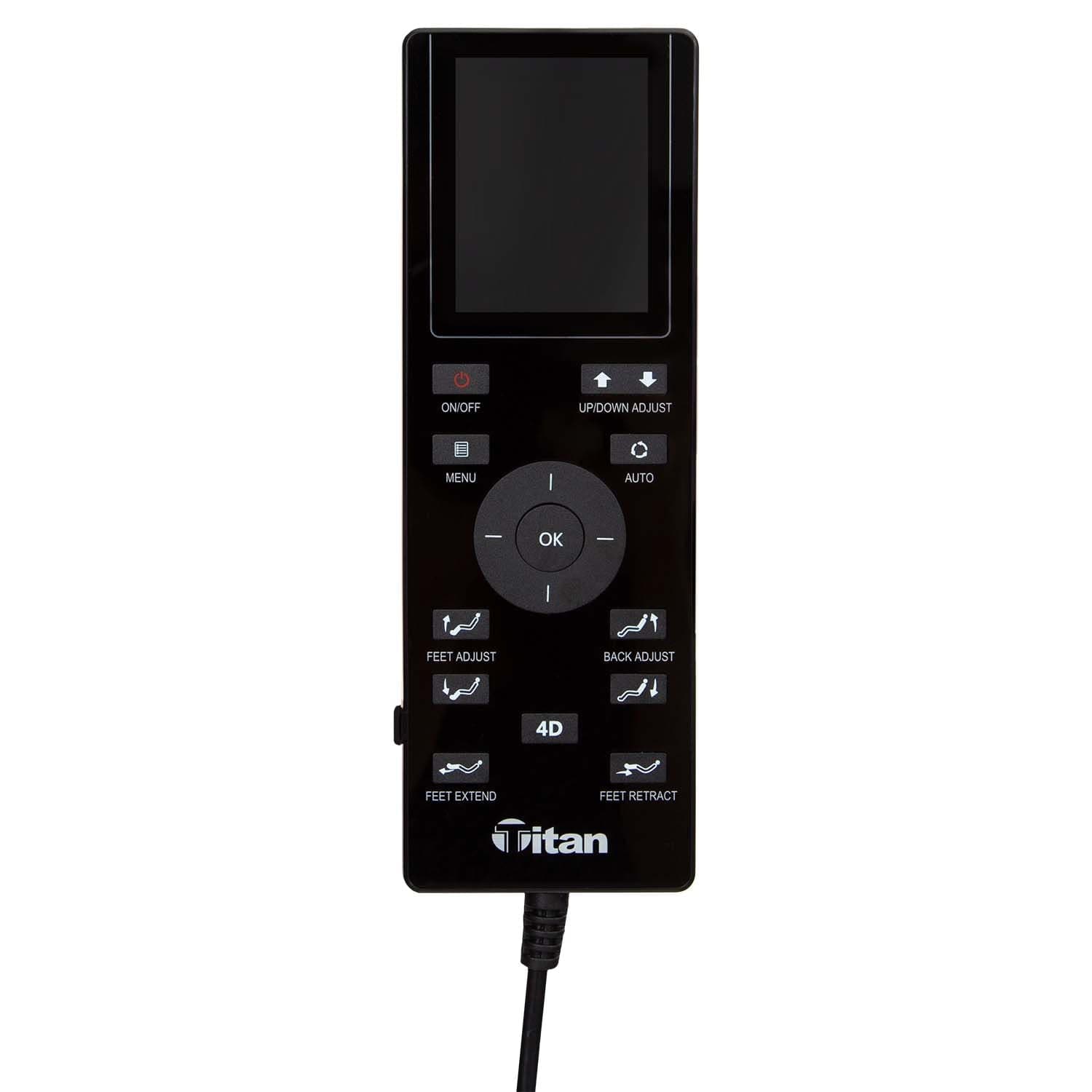 Control your Titan Atlas LE massage chair easily with the slim LCD remote control. The menus are intuitive and easily maneuverable to control every aspect of your massage experience. Store your remote in the handy pocket on the side of the arm. Choose from English or Chinese languages.